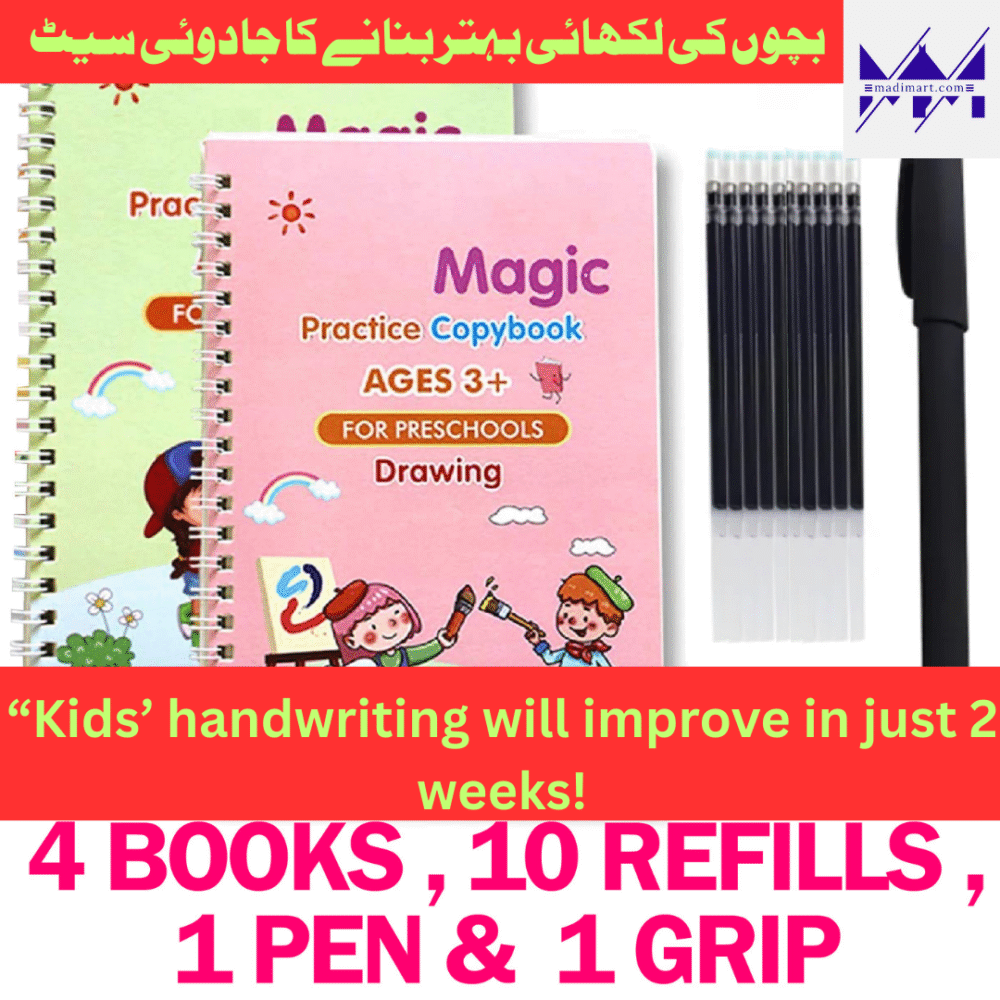 4 in 1 Sank Magic Book | Reusable Magic Practice Copy Book | 4 books + 1 Pen + 10 Refills +1 Grip