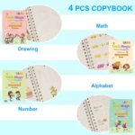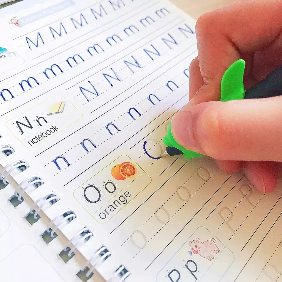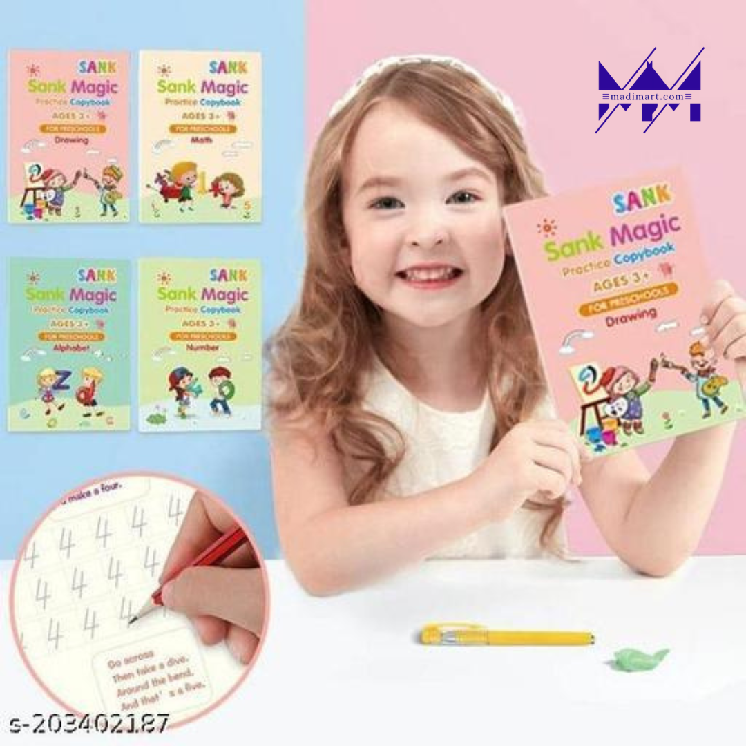KIDS MAGIC REUSABLE PRACTICE BOOK ( 4 books + 1 Pen + 10 Refills +1 Grip ) Improve Kids Handwriting in 15 Days
